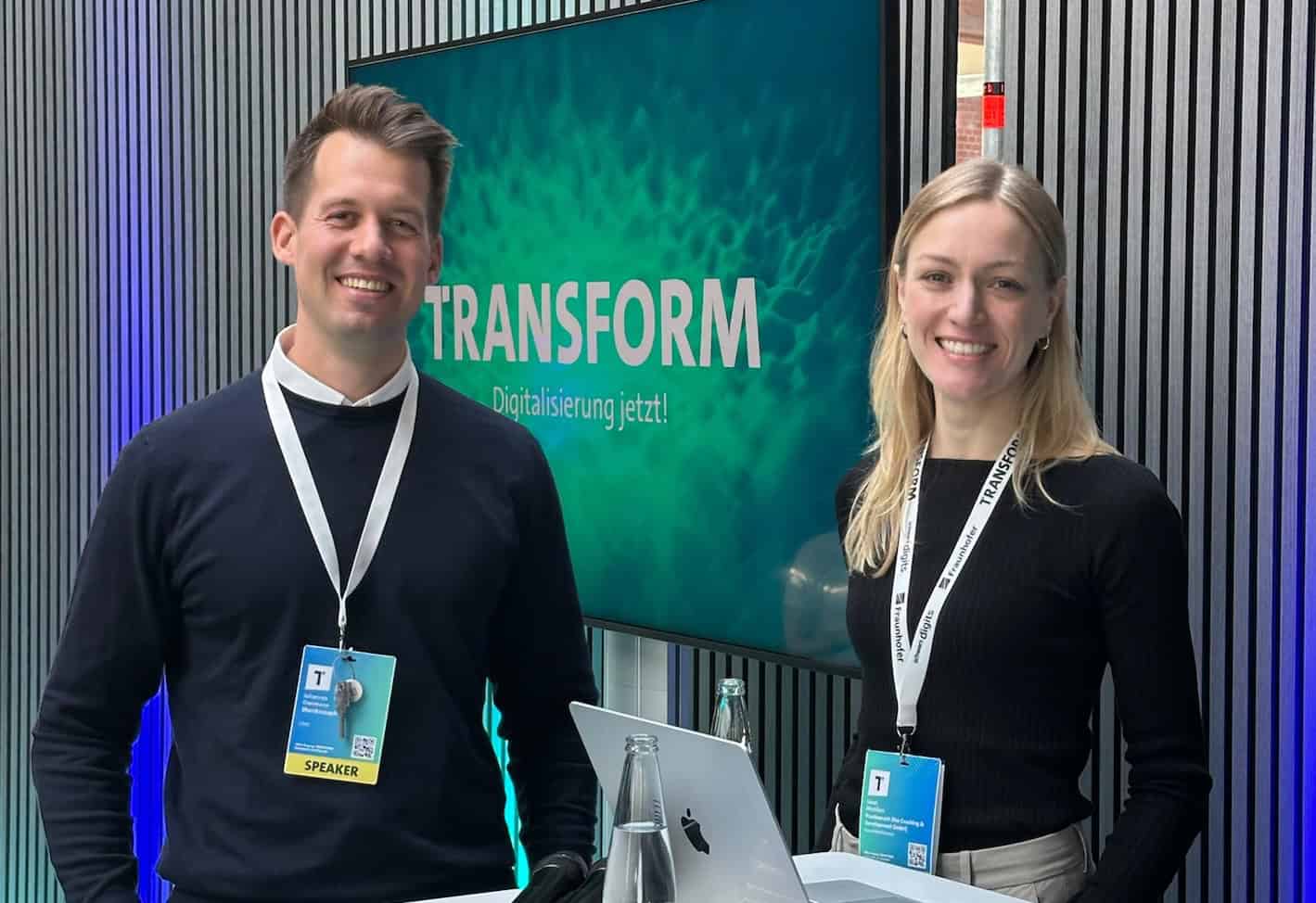 Ich hatte die Gelegenheit, mit Sarah Meeßen, Geschäftsführerin bei thankscoach, zu sprechen (oben auf dem Foto mit Kollege Johannes Darrmann) – einer digitalen Coaching Lösung, die es Organisationen ermöglicht, ihre Fach- und Führungskräfte messbar, wirksam und on demand zu entwickeln – auf geht’s: